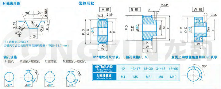 規格 形狀 節徑P.D 外徑O.D 擋邊外徑F 擋邊內徑M 透孔外徑E 輪轂直徑Dm 內孔dH7