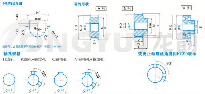| 規格 | 形狀 | 節徑P.D | 外徑O.D | 擋邊外徑F | 擋邊內徑M | 透孔外徑E | 輪轂直徑Dm | 內孔dH7 | |||