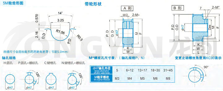 規格 形狀 節徑P.D 外徑O.D 擋邊外徑F 擋邊內徑M 輪轂直徑Dm 內孔dH7