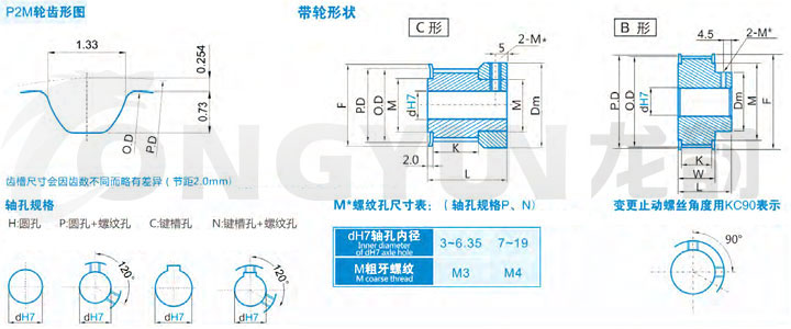規格 形狀 節徑P.D 外徑O.D 擋邊外徑F 擋邊內徑M 輪轂直徑Dm 內孔dH7