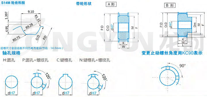 | 規格 | 形狀 | 節徑P.D | 外徑O.D | 擋邊外徑F | 擋邊內徑M | 輪轂直徑Dm | 內孔dH7 | ||||