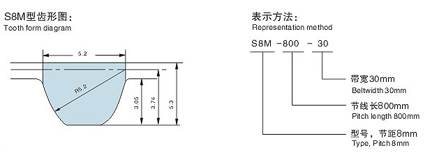 S8M橡膠單麵齒同步帶識別: