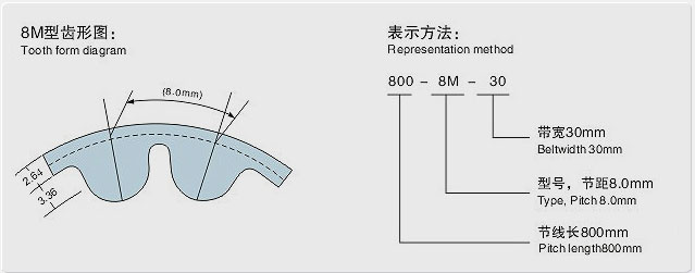 HTD代表圓弧齒型同步帶;8M:同步帶的齒距;3400:表示3400mm節線長,也表示425個齒;寬度可以根據您的需求進行切割,91最新看片地址公司模具標準高度為450mm;